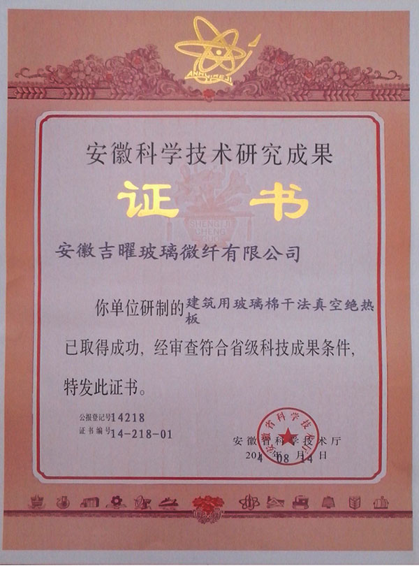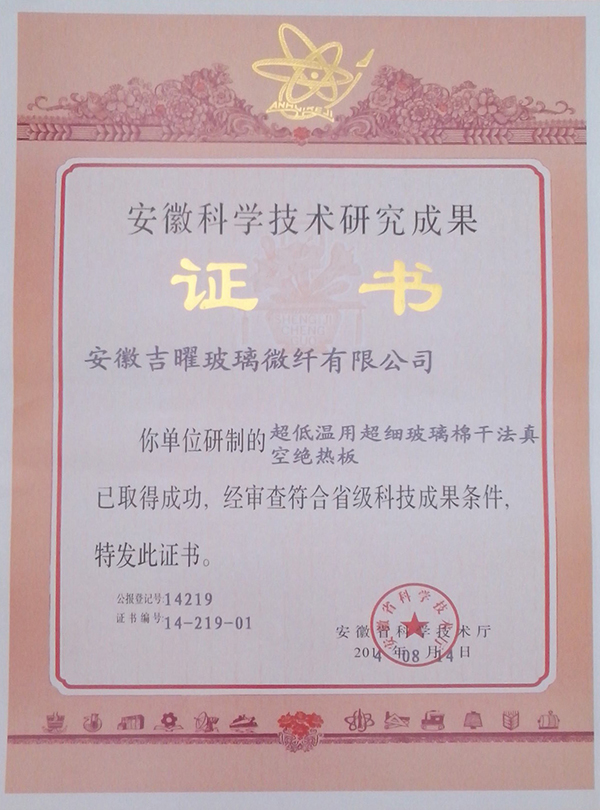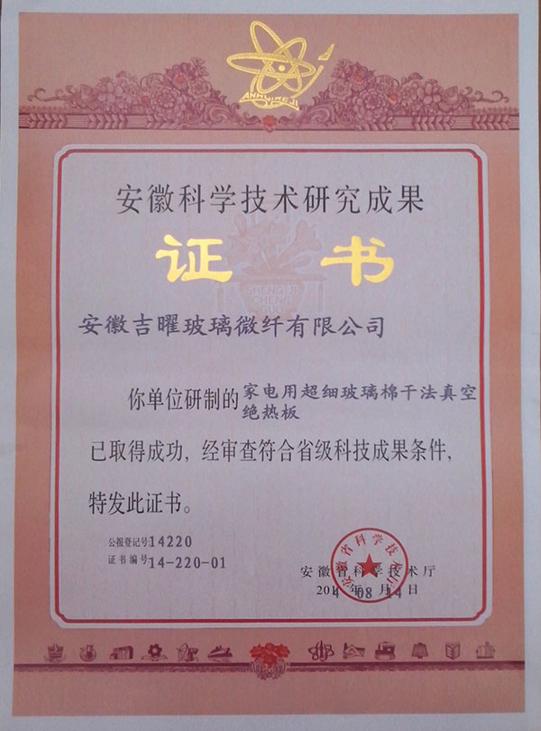 安徽吉曜ガラスファイバー有限公司は操業の開始以来、自社のたゆまぬ努力と製品の研究開発への重視を通じて、ミクログラスファイバーや乾式真空断熱材の分野において多数の発明特許を取得しています。また、業界において行われた各業界の研究会や交流会に積極的に参加し、同業界の企業で一致して認められています。